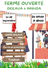 - Marché fermier avec 14 producteurs locaux : fromage de brebis (Ainhoa), fromage de vache, canard, viande bovine, Vin Irouleguy, miel, cidre et jus de pomme, porc basque, légumes, biscuits, piment d'Espelette (Ainhoa), etc.