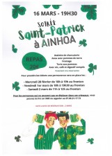 Le Comité des Fêtes organise le 16 mars un repas pour la Saint Patrick à partir de 19h30, à la salle Elkartetxea